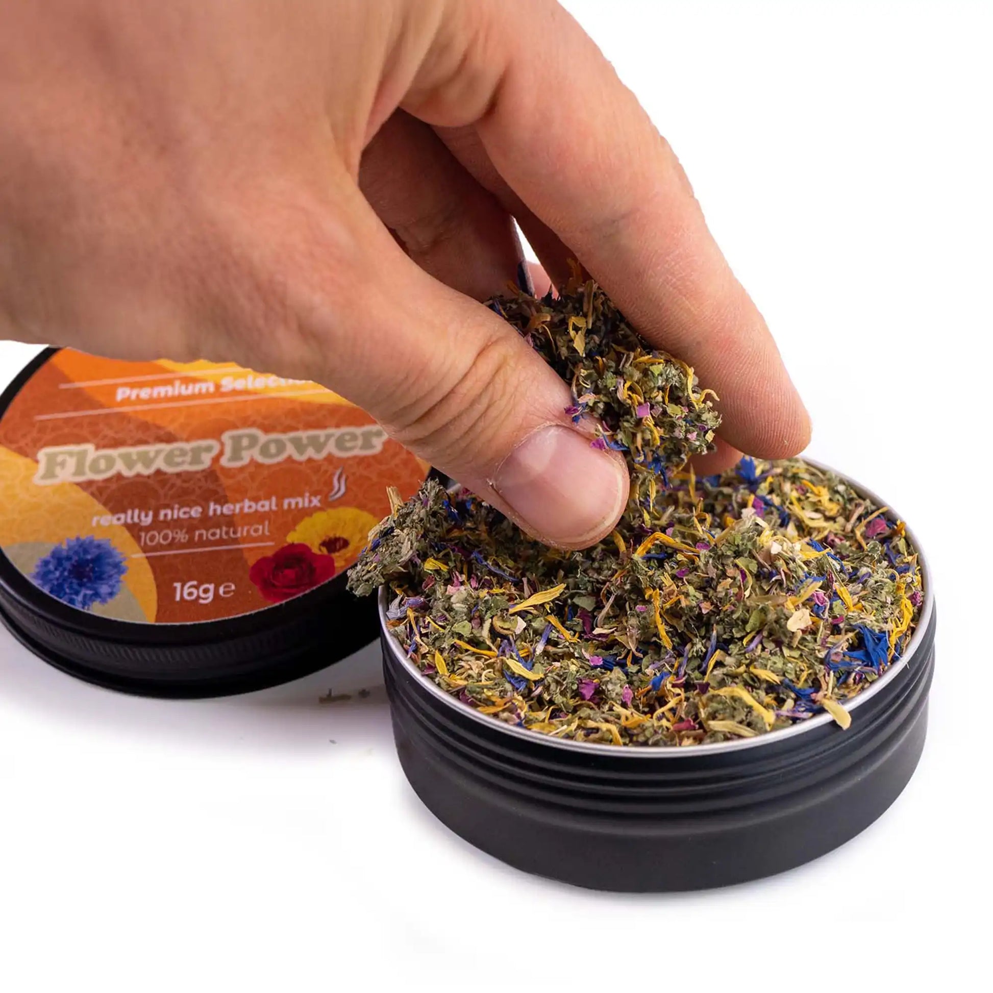 Flower Power 16g Kräutertee-Mischung mit ausgleichender Kornblume & Rosenblüten (in der Dose)
