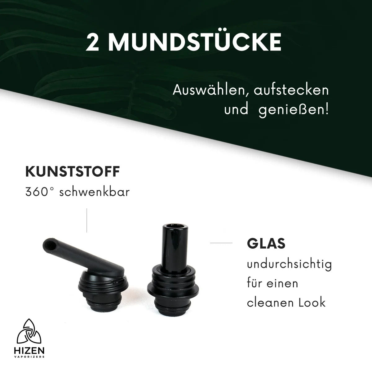 Wähle zwischen dem schwarzen Glasmundstück oder einem einklappbaren Mundstück, um deinen Komfort zu maximieren.