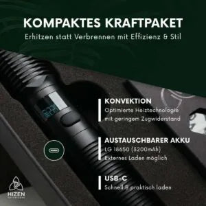 - Stufenlose + gradgenaue Temperatur – Hol das Maximum aus deinen Kräutern mit der für dich optimalen Temperatur zwischen 80°C und 220°C.